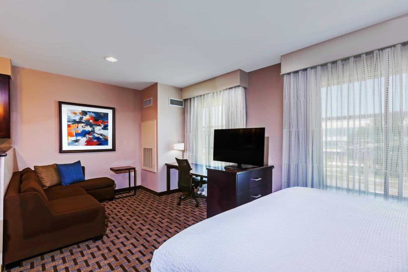 King Studio with Sofa Bed - Hearing Accessible. Providing free toiletries, this studio includes a private bathroom with a shower and a hairdryer. In the fully equipped kitchen, guests will find a stovetop, a refrigerator, a dishwasher and kitchenware. The studio features carpeted floors, a seating area with a flat-screen TV with streaming services, air conditioning, a tea and coffee maker, as well as a dining area. The unit offers 2 beds. ;