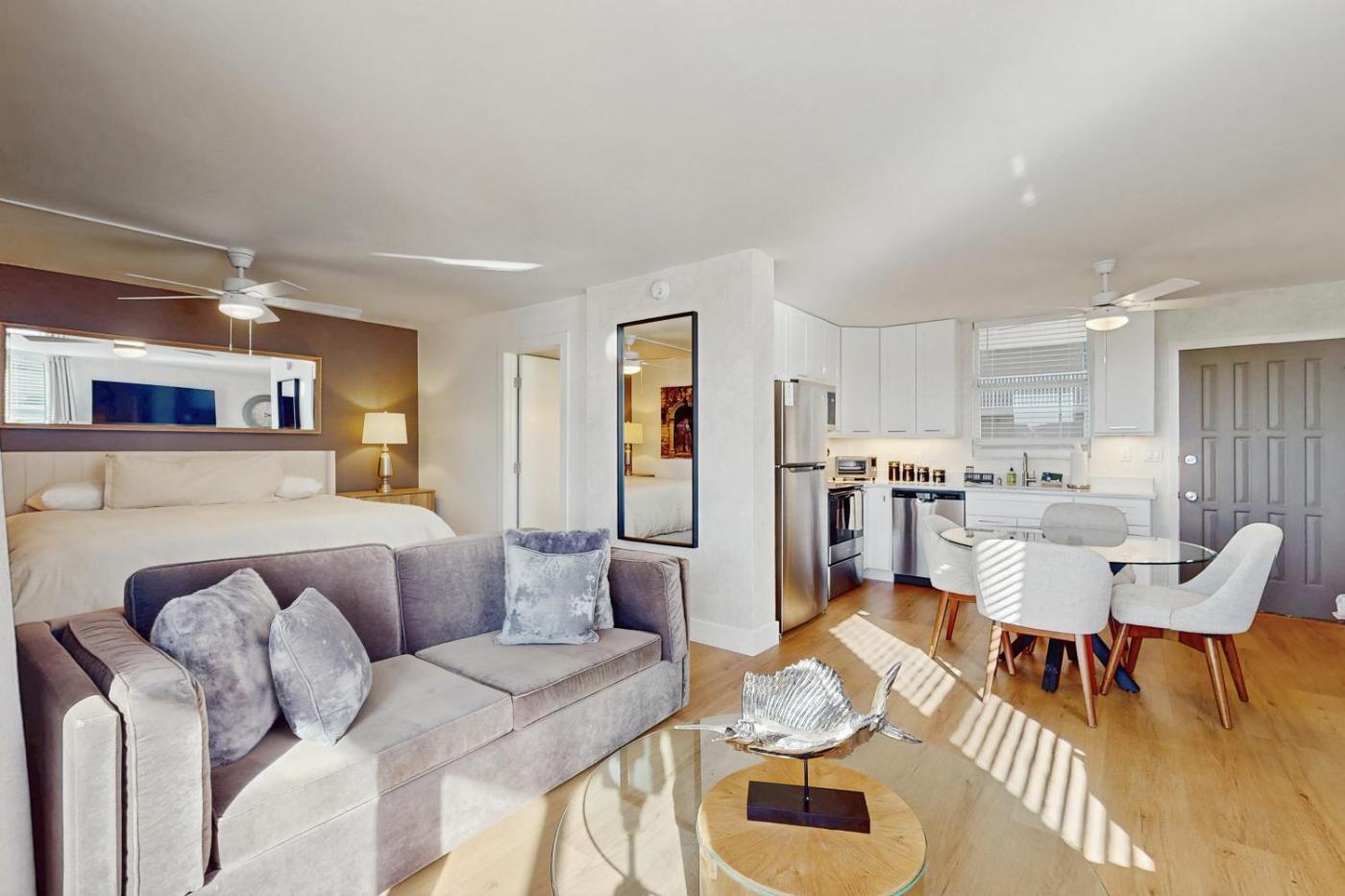 One Bedroom Apartment. Boasting a private entrance, this air-conditioned apartment features 1 living room, 1 separate bedroom and 1 bathroom with a shower and a hairdryer. Guests will find a stovetop, a refrigerator, a dishwasher and kitchenware in the kitchen. The apartment also comes with a barbecue. Featuring a terrace with sea views, this apartment also features a washing machine and a flat-screen TV with streaming services. The unit has 2 beds.
