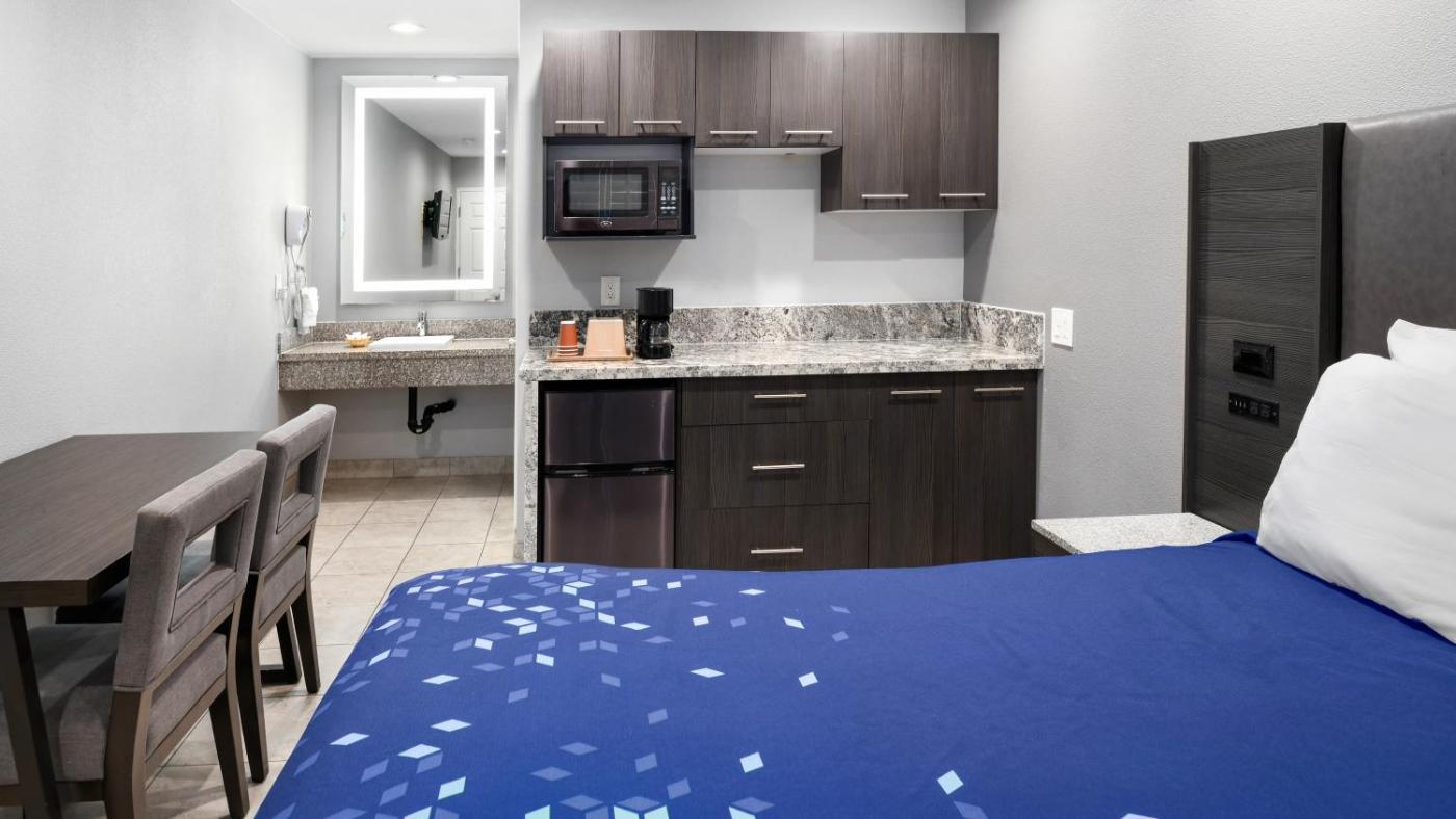 Deluxe Queen Studio. This studio includes a microwave, a refrigerator and a TV. ;
