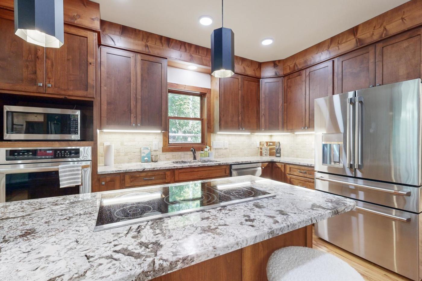 The holiday home is equipped with 3 bedrooms, a fully equipped kitchen with a dishwasher and an oven, a washing machine, and 2 bathrooms with a hair dryer and free toiletries. Towels and bed linen are provided in the holiday home. There is also a seating area and a fireplace.