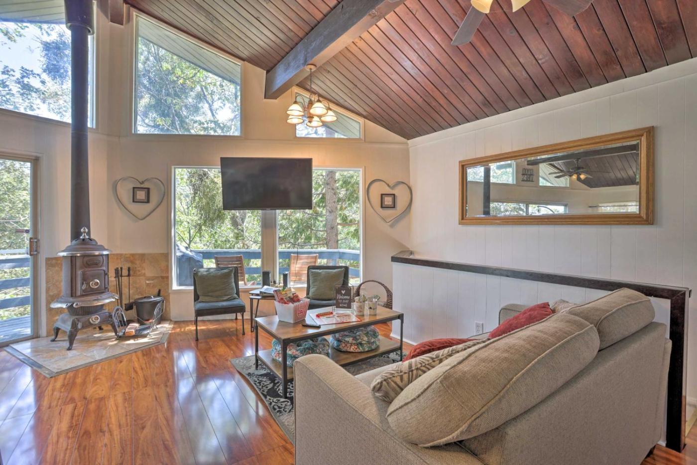 1 Mi to Lake Gregory Mtn-View Cabin with Deck is situated in Crestline, 48 km from Big Bear Marina, 47 km from Aspen Glen Picnic Area, and 26 km from California State University San Bernardino. Free WiFi is featured throughout the property and private parking is available on site. The property is non-smoking and is47 km from Alpine Slide at Magic Mountain.