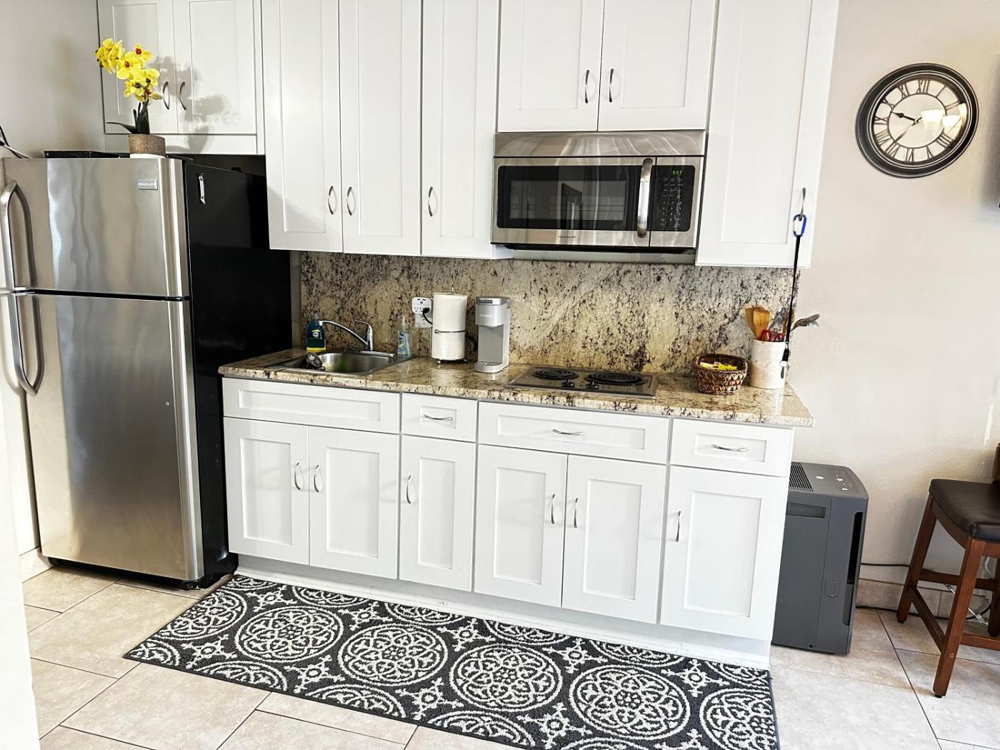 Deluxe Queen Studio. Guests can make meals in the kitchenette that is equipped with a stovetop, a refrigerator, kitchenware and a microwave. This air-conditioned studio includes a flat-screen TV with cable channels, a private bathroom as well as an outdoor dining area. The unit offers 2 beds.