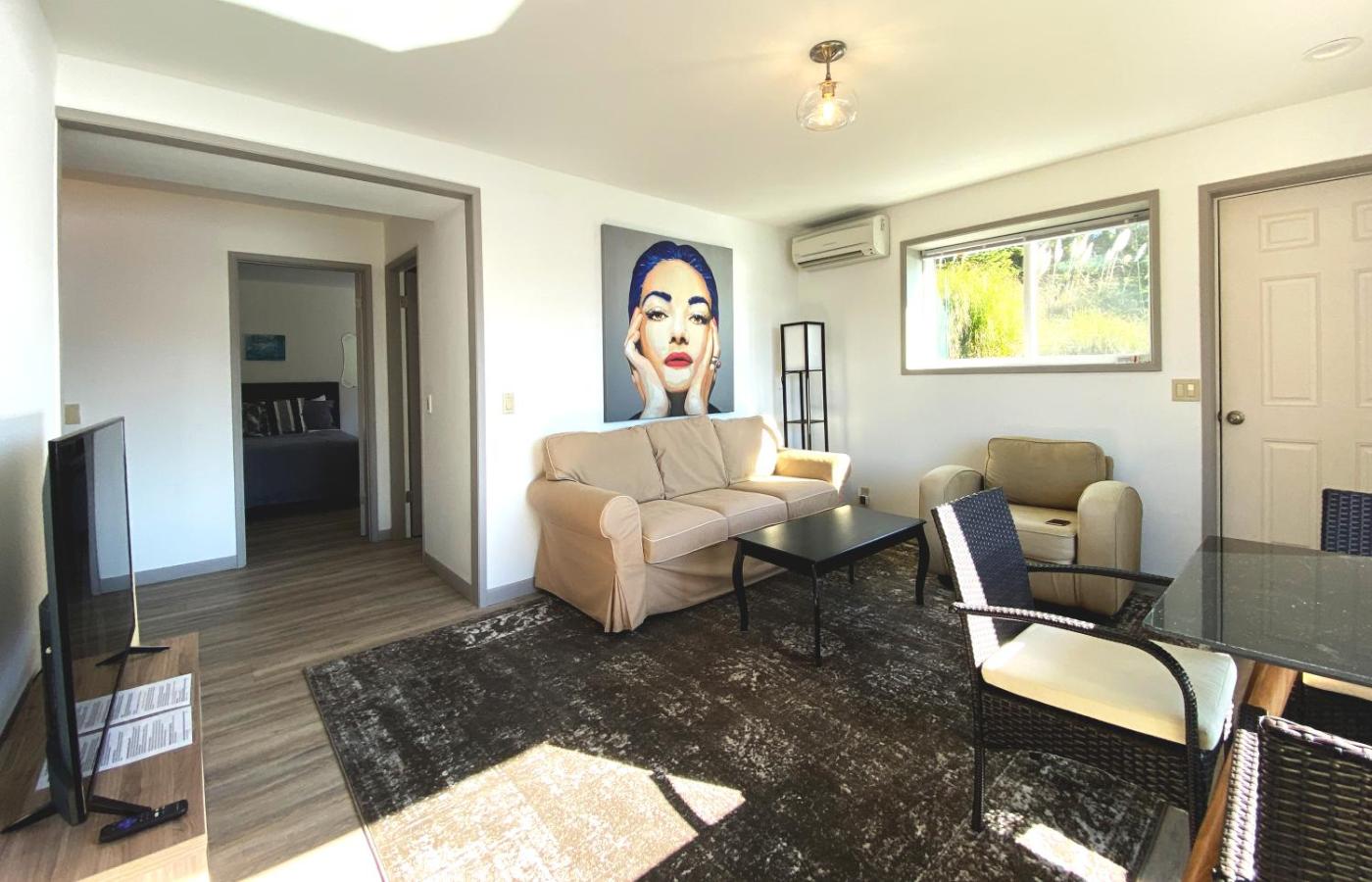One-Bedroom Apartment. Guests can make meals in the kitchenette that features a refrigerator, kitchenware, a microwave and a toaster. The spacious air-conditioned apartment features a flat-screen TV with streaming services, a private entrance, a tea and coffee maker, a seating area as well as lake views. The unit has 2 beds.
