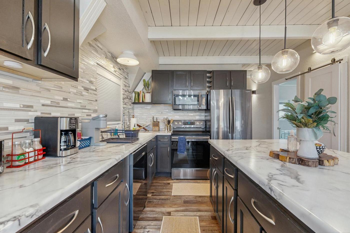 Three-Bedroom House. Boasting a private entrance, this air-conditioned holiday home includes 3 bedrooms and 2 bathrooms with a hairdryer. Guests will find a stovetop, a refrigerator, a dishwasher and kitchenware in the kitchen. The holiday home also features a barbecue. The holiday home offers a TV with streaming services, a washing machine, a tea and coffee maker, a seating area as well as lake views. The unit has 4 beds.