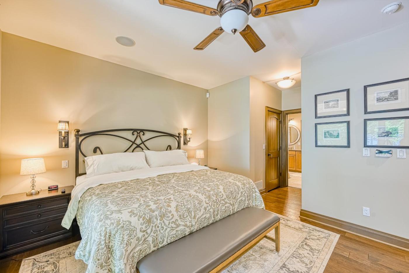 Four-Bedroom House. This holiday homes special features are the hot tub and the fireplace. This spacious holiday home features 1 living room, 4 separate bedrooms and 5 bathrooms with a hairdryer and free toiletries. Guests will find a stovetop, a refrigerator, a dishwasher and kitchenware in the fully equipped kitchen. The holiday home also comes with a barbecue. The air-conditioned holiday home features a TV with streaming services, a washing machine, a private entrance, a tea and coffee maker as well as lake views. The unit has 9 beds.