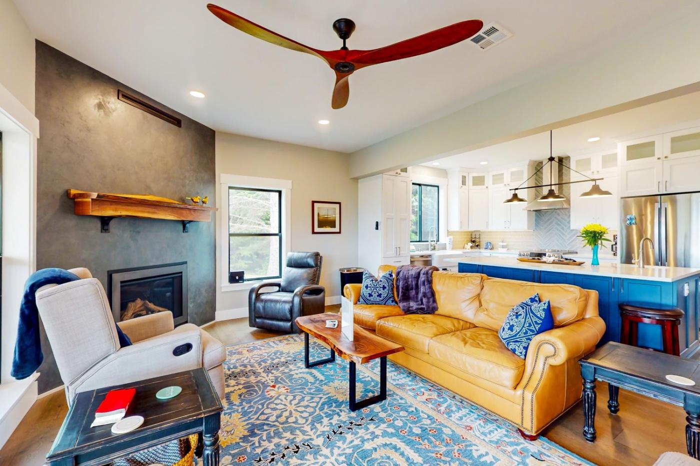 Five-Bedroom House. The fireplace is the standout feature of this holiday home. The spacious holiday home has 5 bedrooms and 4 bathrooms with a hairdryer and free toiletries. Guests will find a stovetop, a refrigerator, a dishwasher and kitchenware in the fully equipped kitchen. The holiday home also comes with a barbecue. The air-conditioned holiday home features a TV, a washing machine, a private entrance, a tea and coffee maker as well as sea views. The unit has 10 beds.