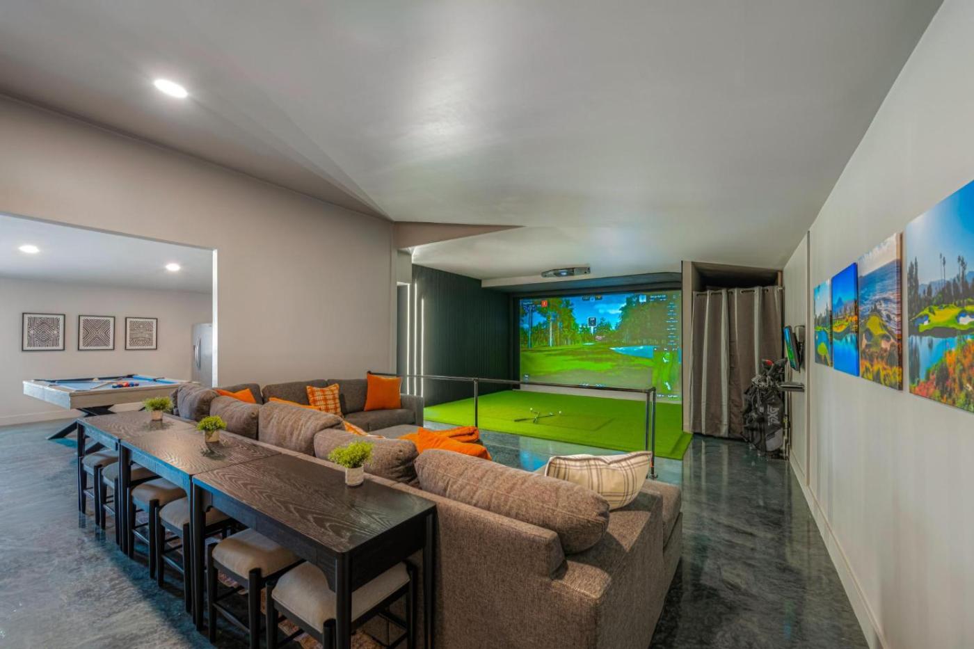 Holiday Home. The private pool and hot tub are the special features of this holiday home. This spacious holiday home consists of 1 living room, 7 separate bedrooms and 5 bathrooms with a bath and free toiletries. Guests will find a stovetop, a refrigerator, a dishwasher and kitchenware in the kitchen. The holiday home also offers a barbecue. The air-conditioned holiday home provides a TV with streaming services, a washing machine, a private entrance, a tea and coffee maker as well as mountain views. The unit offers 14 beds.
