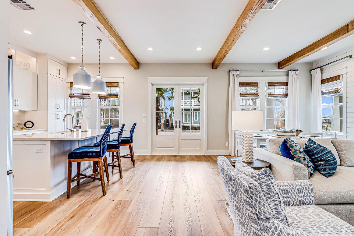 Two-Bedroom House. This spacious holiday home features 1 living room, 3 separate bedrooms and 3 bathrooms with a hairdryer and free toiletries. The fully equipped kitchen has a stovetop, a refrigerator, a dishwasher and kitchenware. The air-conditioned holiday home features a TV with streaming services, a washing machine, a private entrance, a tea and coffee maker as well as sea views. The unit has 7 beds.