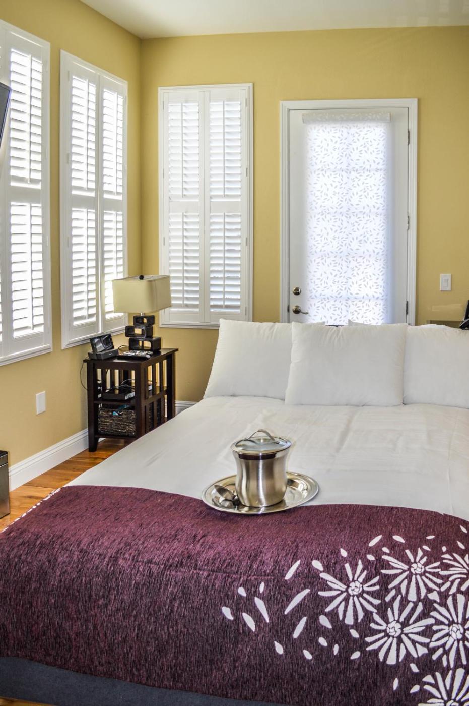 Deluxe Queen Room (# 4). Featuring a fireplace, this suite includes a flat-screen cable TV. A microwave and a refrigerator are provided. It also has views of the San Lorenzo River running from the Santa Cruz Mountainsthe Pacific Ocean. This room is located on the second floor and the bathroom has an open shower with spa bath. ;