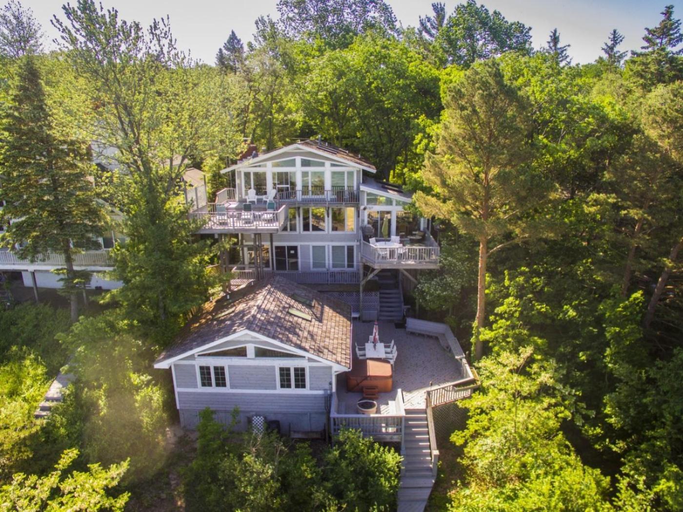 Eight-Bedroom House. The hot tub and fireplace are the standout features of this holiday home. Boasting 8 bedrooms, this spacious holiday home has 6 bathrooms with a hairdryer, a seating area and terraceyou can relax. Guests will find a stovetop, a refrigerator, a dishwasher and kitchenware in the well-equipped kitchen. The holiday home also includes a barbecue. The air-conditioned holiday home features a TV with cable channels, a washing machine, a private entrance, a tea and coffee maker as well as lake views. The unit offers 15 beds.