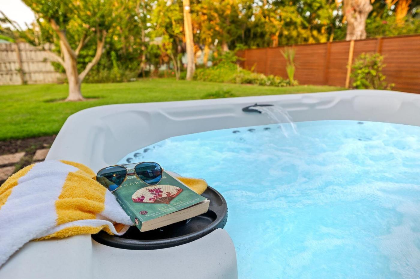 Family Room. This family rooms standout feature is the hot tub. The spacious family room offers air conditioning and a washing machine, as well as a private bathroom boasting a hairdryer. Guests will find a stovetop, a refrigerator, a dishwasher and a microwave in the fully equipped kitchen. The family room also features a barbecue. This family room has tumble dryer, heating, a TV and a patio. The unit has 4 beds.