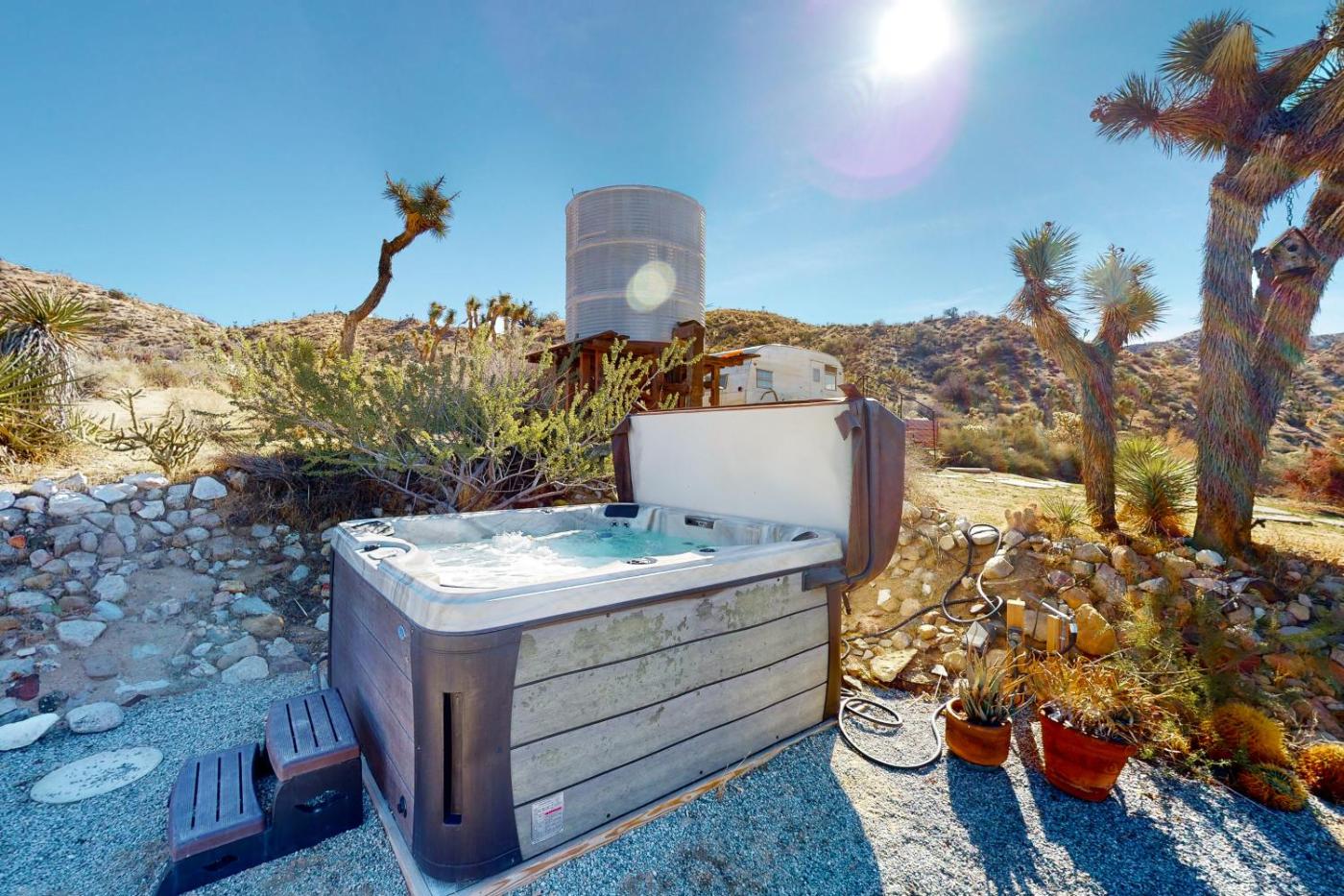 Located in Yucca Valley, Wowanka Paradise provides accommodation with a private pool and mountain views. The property is around 37 km from Palm Springs Visitor Center, 37 km from Palm Springs Aerial Tramway and 40 km from ODonnell Golf Course. The holiday home has an outdoor fireplace and a hot tub.